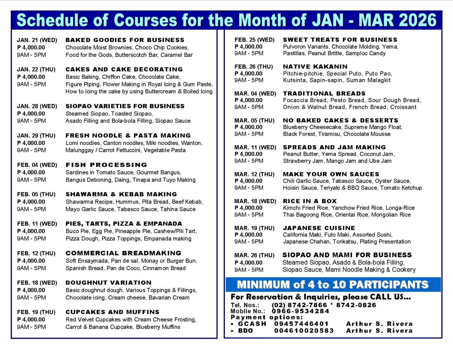 - Tutorial fee is Php 12,000.00 plus (+) the cost of actual materials, ingredients and packaging needed (approximately Php 4,500.00, depends on your chosen product)